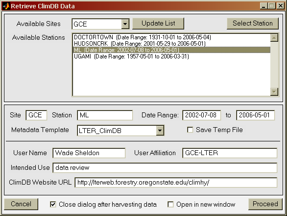 retrieving data from the LTER ClimDB/HydroDB database. An updated lists of sites, stations