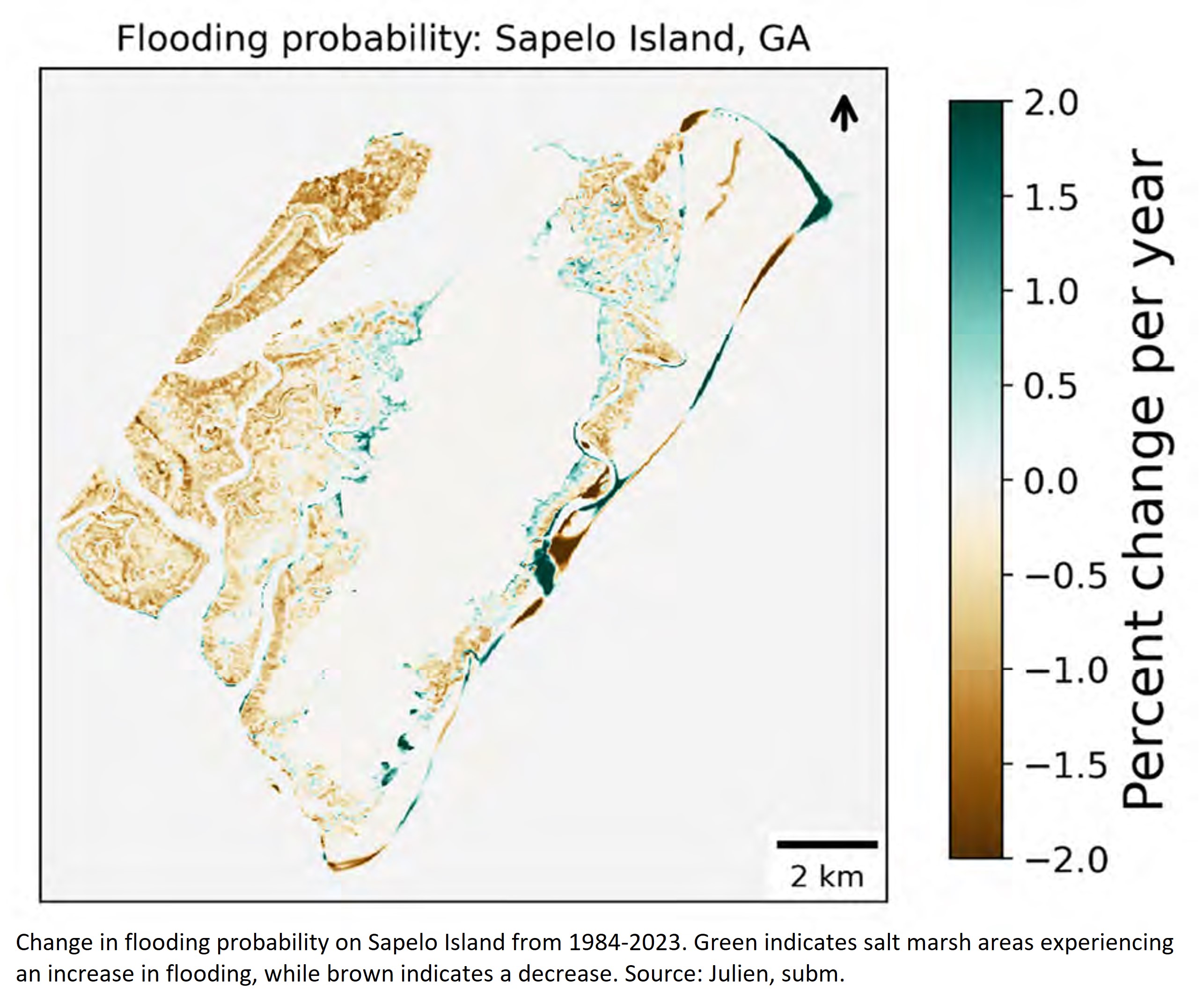 Narron, C., O'Connell, J.L., Mishra, D., Cotten, D.L., Hawman, P. and Mao, L. 2022. Flooding in Landsat across tidal systems (FLATS): An index for intermittent tidal filtering and frequency detection in salt marsh environments. Ecological Indicators. 141:109045. (DOI: 10.1016/j.ecolind.2022.109045)